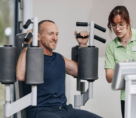 Bewegung ist ein zentraler Baustein für Gesundheit, Wohlbefinden und den langfristigen Erfolg der Rehabilitation. Gerade nach Erkrankungen oder Operationen unterstützt gezieltes Training den Körper dabei, Kraft, Ausdauer und Mobilität wiederaufzubauen und zu erhalten. Dabei achten wir stets darauf, dass Sport und Fitness individuell auf Ihre Belastbarkeit und Ihr Krankheitsbild abgestimmt sind.